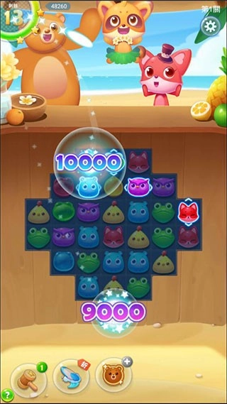 强力引进5种新鲜玩法,每个关卡类型都有小动物的陪伴哦,精心设计的200+,给你新鲜丰富的体验,更有全新的清凉效果,消除轻松清爽。可爱的小浣熊变成了船长,带领小伙伴们去沙滩游泳,调皮的小鱼,q弹软糖,脆弱的蜜罐,会跑的玫瑰,生气的小海星,瓶子里美丽的蝴蝶……在你的旅途中会有更多的惊喜等待你去发现!