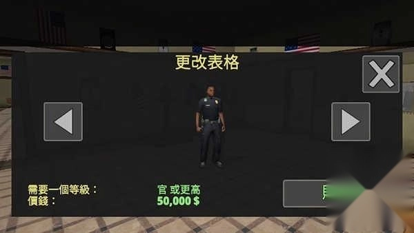 玩家点击改变统一下方的即可进入商店,可以购买警棍、摄像头、防弹衣等物品。
