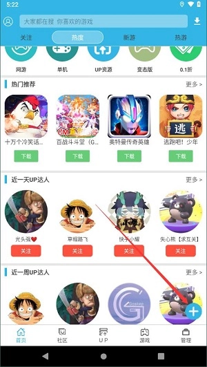 1、进入up板块,点击并关注你感兴趣的用户。