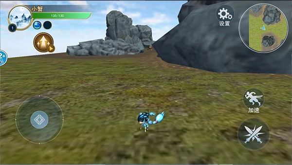 2、左侧虚拟摇杆控制异兽移动,右侧按钮负责加速和攻击。