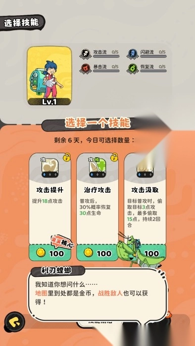 同时你可以选择技能,这里有很多的流派,每一个技能都需要用金币购买。