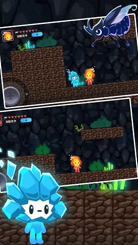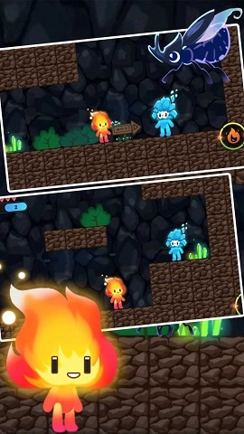 1、冰火双人游戏,延续经典玩法,开启独特的冒险闯关之旅。玩家需穿越森林,躲避各类机关陷阱,消灭路径上的敌人,协助队友找到回家的路,最终一同安全返回。