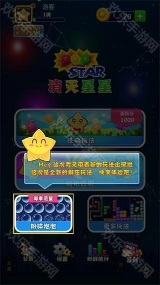 6、消灭星星全新版还提供了粉碎泡泡等多种玩法可供选择;