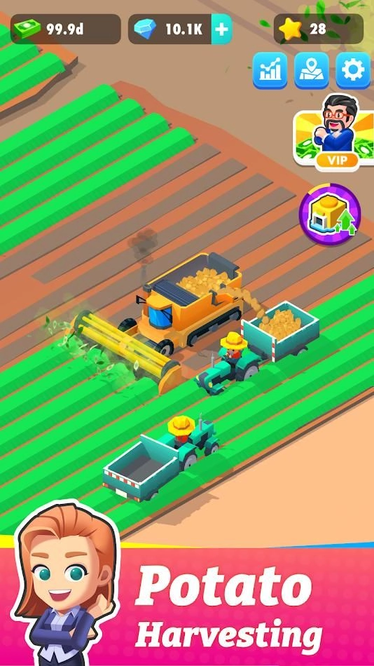 您拥有最高效的土豆收割机,提升他们的效率以更快地收获!升级您的核心机器,以便它可以有效地分拣土豆。