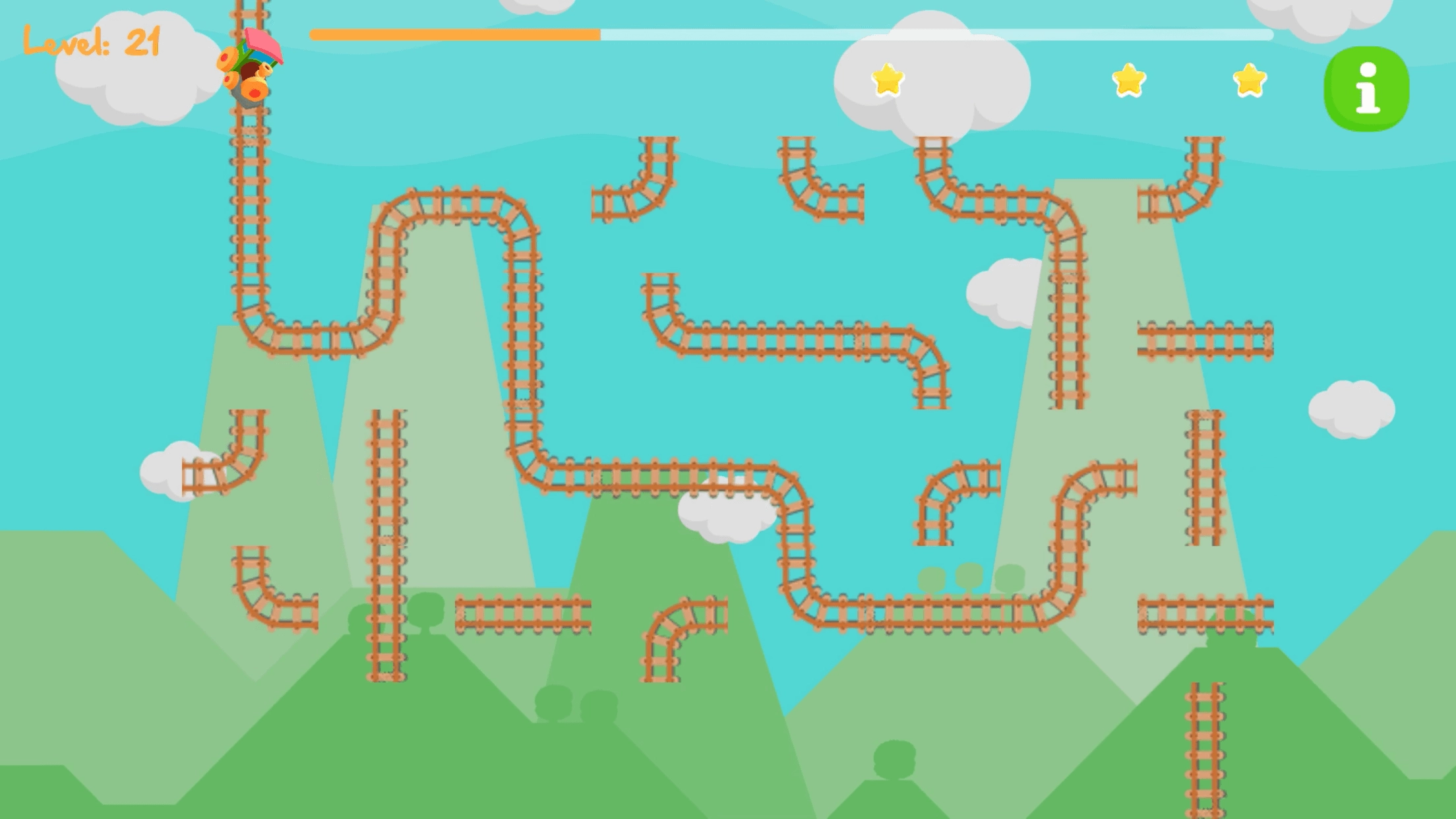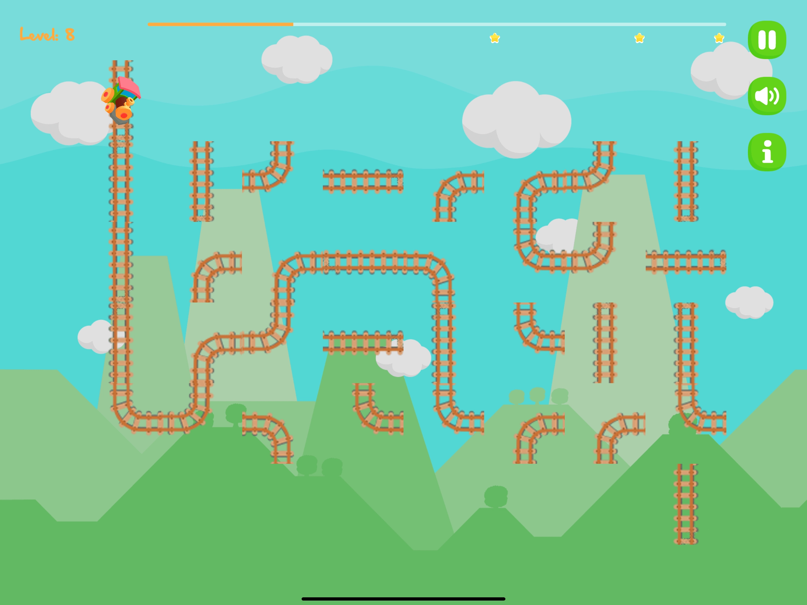 在最后通车之前,把你拼的轨管检查一遍,确认没问题;多重关卡,多维难度,多重挑战;操作简单,只需用一根手指单击即可;