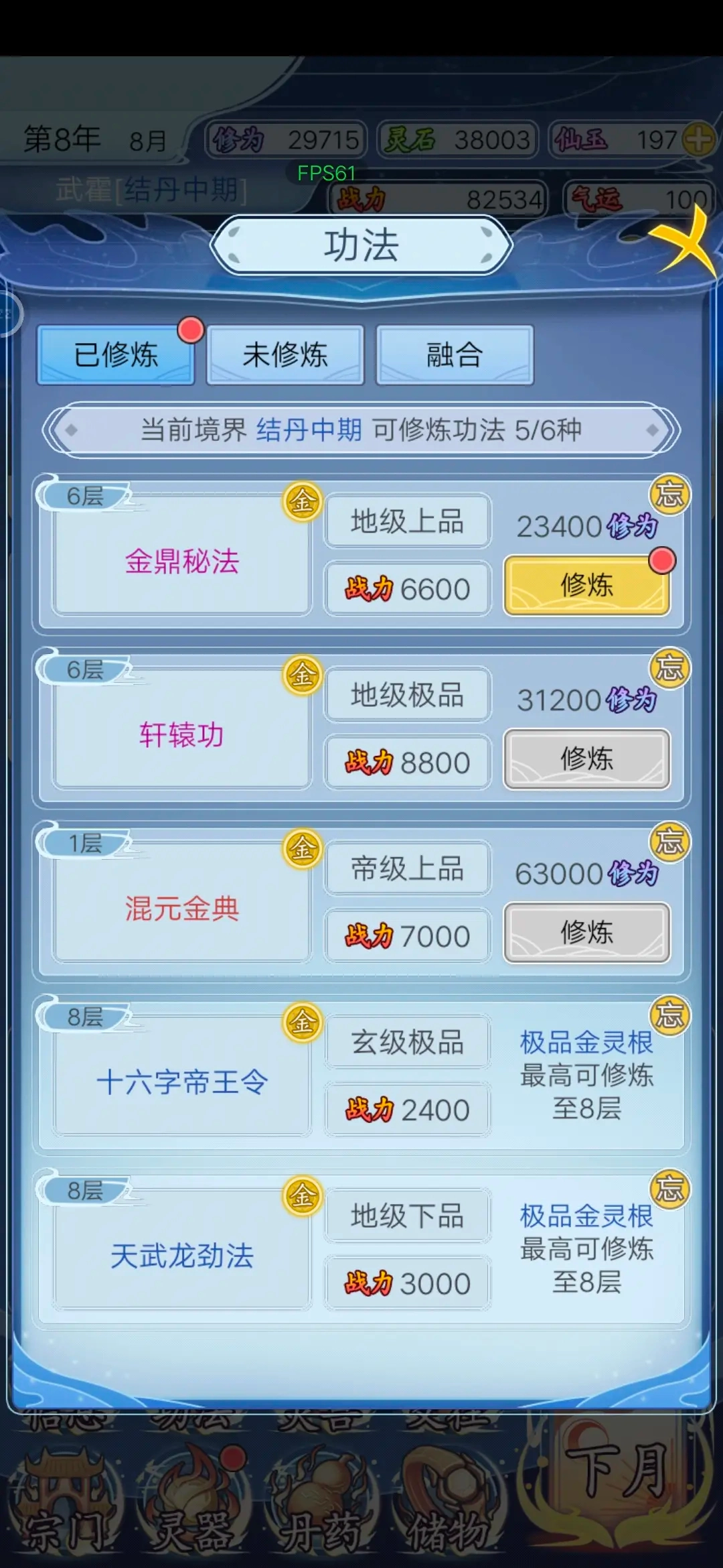 根据五行灵根情况,搭配适合的心法。游戏提供数百种功法武技,玩家需结合自身特点选择。通过采药和冒险获得的原料,炼制丹药和神兵。炼丹炼器不仅提升实力,还能卖出获利。