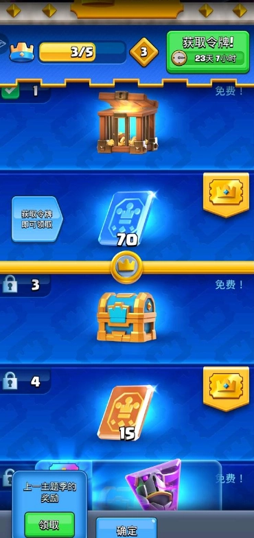 其实很简单,每个赛季令牌里的资源是会保留到下一赛季的(如图一左下角),点开后就可以领取上一赛季没有领取的所有资源(如图二),包括代币宝箱和外卡又因为每个赛季的商店库存不同,而代币又会被转化成金币,导致每个赛季都需要从零开始获取代币当这一赛季的库存对我用处不大时,我就会不领取令牌里的代币(如图三),等到下赛季商店爆料之后,对比下商店库存,再决定是下赛季领取还是这赛季领取外卡也是同理,如果外卡库存快满了,可以先把令牌里的外卡存起来,等到下赛季再领取。