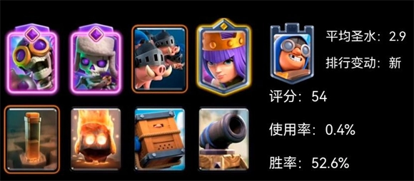 这套卡组的卡牌获取难度相对较低,同时圣水消耗也控制在合理范围内,非常适合普通玩家冲击5000杯的关卡。当然,游戏的结果往往受到玩家技巧和运气的影响,卡组并非战无不胜,但它无疑为平民玩家提供了一个既稳定又实用的策略选择。