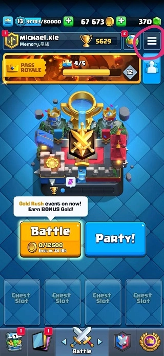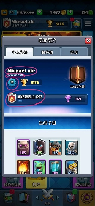 1、进入国服皇室战争,点击自己的名字弹出如下画面: