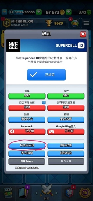- 国际服皇室战争(本页面即可),特征是游戏设置里面有supercell ID的选项