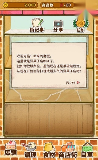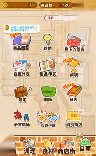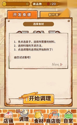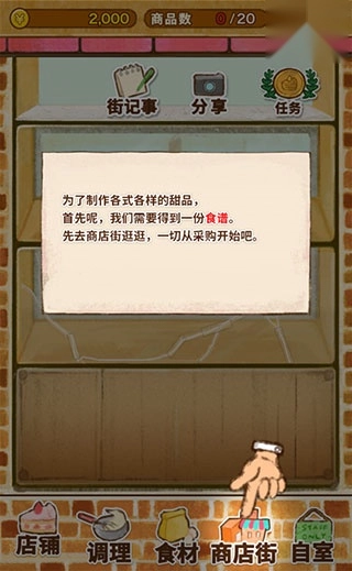 3、点击底部的【商业街】可以采购各种食谱来制作美味的甜品。