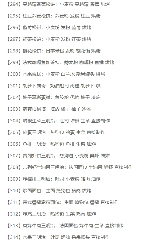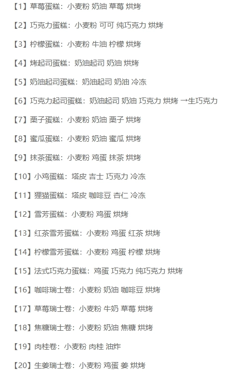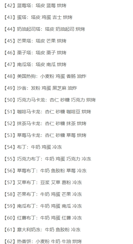 1.这里有着各种不同的食谱,来让你的商店商品变的更加的丰富。