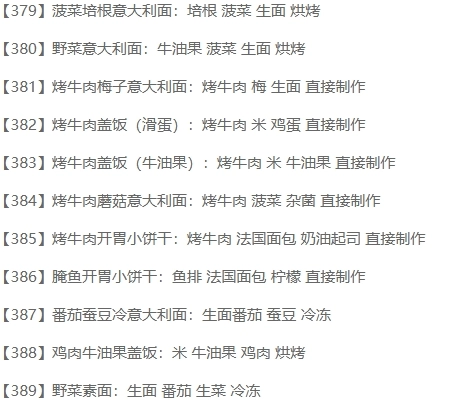 2.不断的购买更多的食材,将各种食材来进行配比,来进行烹饪。