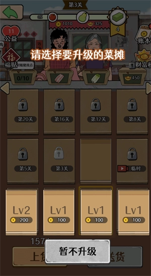 3、可以用卖货物的钱升级小摊,让摊子能赚到的钱变得更多