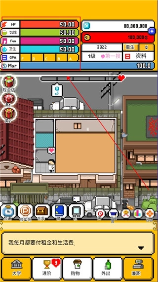 4.再看右边,清晰显示着你的名字、等级、所处学期以及手头的金钱数额,这可是了解自身“经济实力”的便捷窗口。
