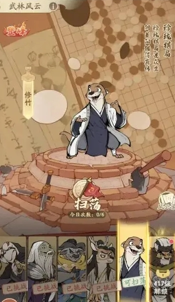 武林风云:根据角色等级会解锁相应等级的 boss,击败 boss 可以获取相应的挑战奖励。每日可以对挑战成功的最高等级 boss 进行 6 次扫荡,第一次免费,后续则需要花费元宝进行扫荡。建议每天将扫荡次数用完,这是大量获取包子的主要来源之一。
