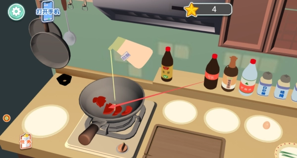 4、使用灶台进行烹炒时,需适时添加右侧调料架的调味品,精准配比提升菜品评分