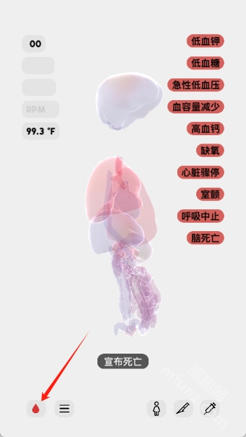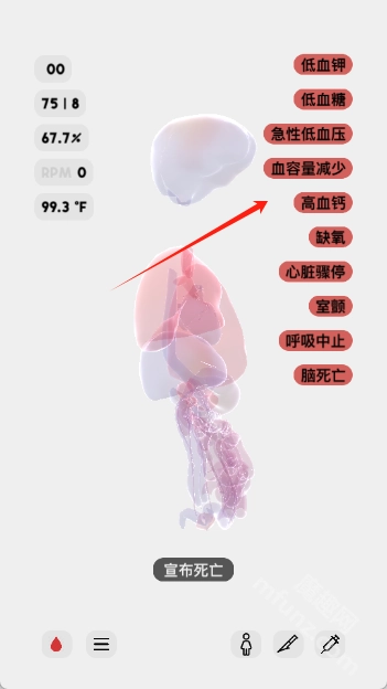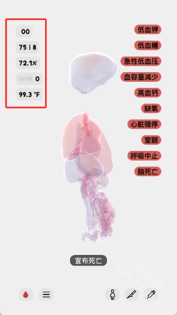 2.右上角显示人体状态词条,点击可查看详细解释。词条随状态更新症状。