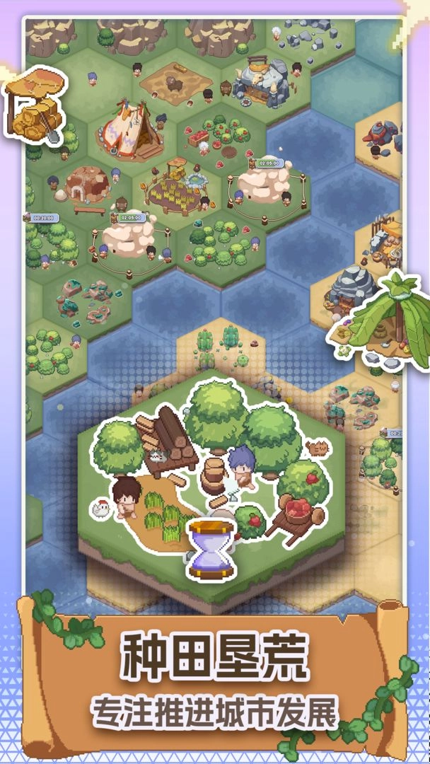 资源管理:计时结束后,您将获得资源。合理分配这些资源,用于文明的发展,如建造建筑、改善设施。