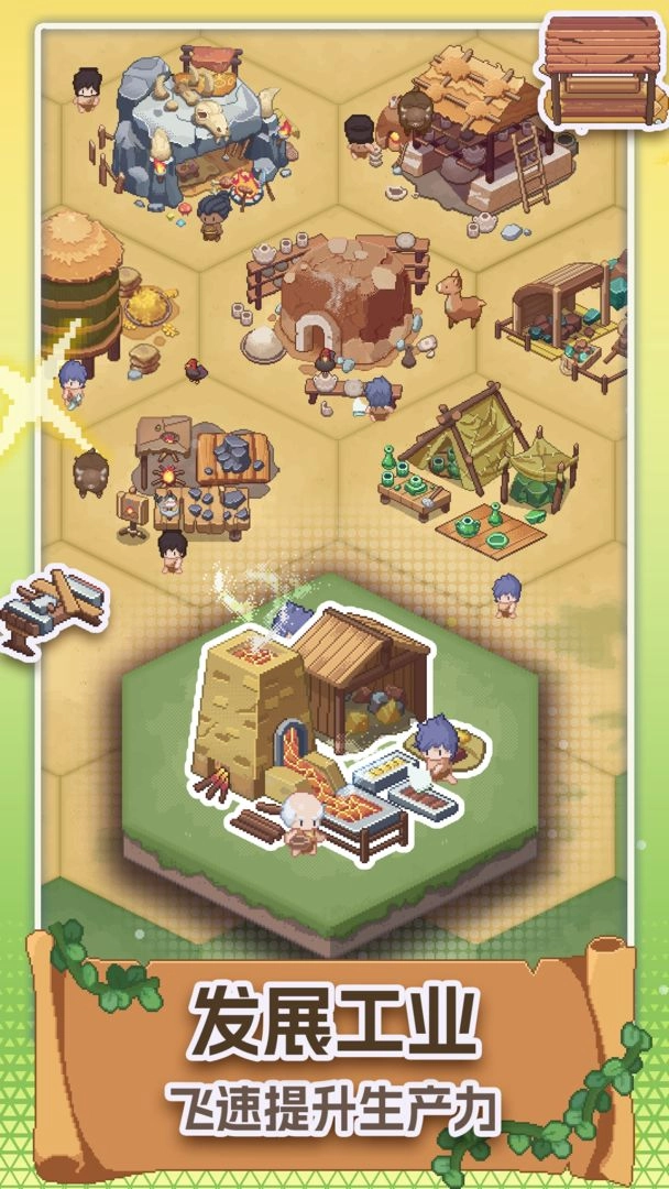 文明建设:从石器时代开始,逐步发展您的文明。建造不同类型的建筑,每个建筑都能生产特定的繁荣点数,促进城市发展。