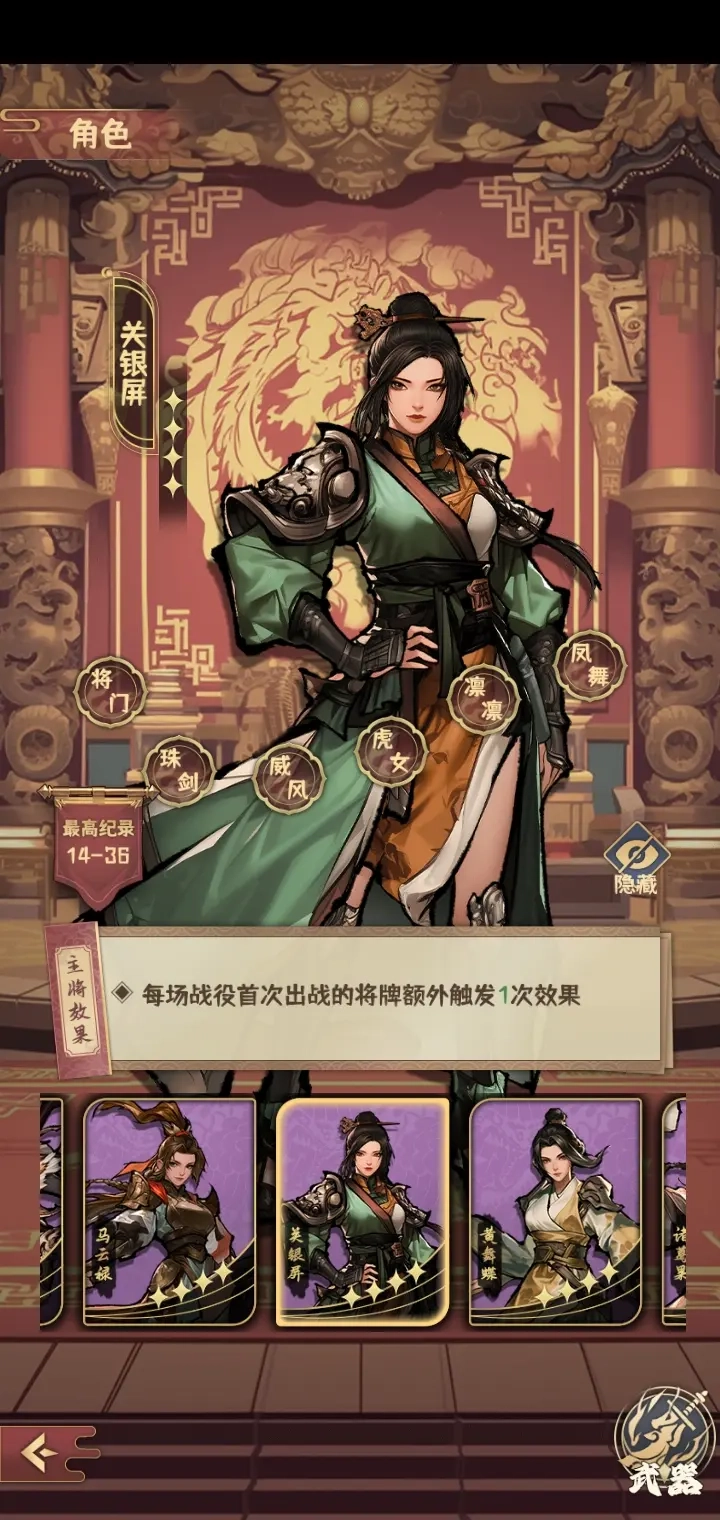 ⑦武器推荐龙胆亮银枪和八宝麒麟弓,可以增加七探盘蛇和大胜之势的概率,都没有的话不如带蓝装还更好一点,金色和紫色武器会增加特定战略牌的出现概率,每次刷新都生效,降低找关键战略牌的效率