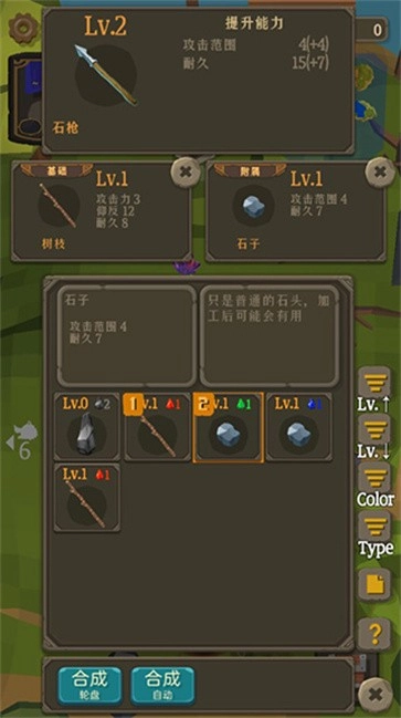 6、当我们收集到一定的材料之后,可以选择右下角的宝箱,进行武器的制作,不同的材料可以制作不同的武器。