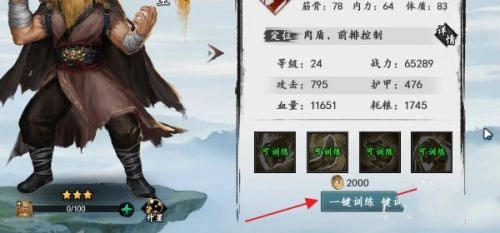 3、我们就来到侠客金毛狮王处,点击侠客金毛狮王修炼下方的一键训练;