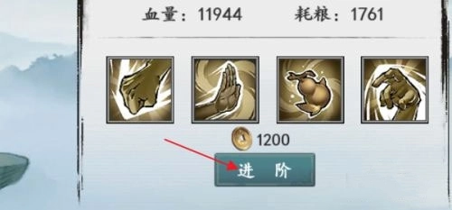 5、接下来,我们再点击侠客金毛狮王修炼下方的进阶;
