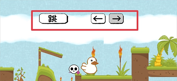 4、第三个小游戏,通过上面的跳和左右按钮让鸭子爬上最右侧的山顶即可