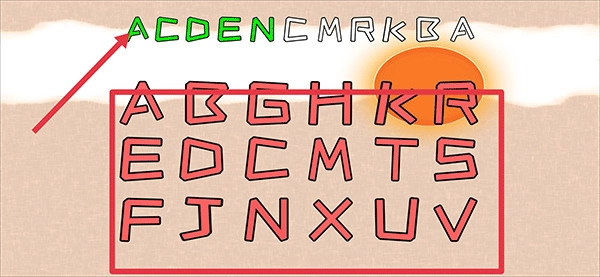 5、最后一个小游戏,按照上方白色的字母顺序,点击下方相应红色字母按钮。所有游戏完成会进入最后剧情环节,然后游戏结束