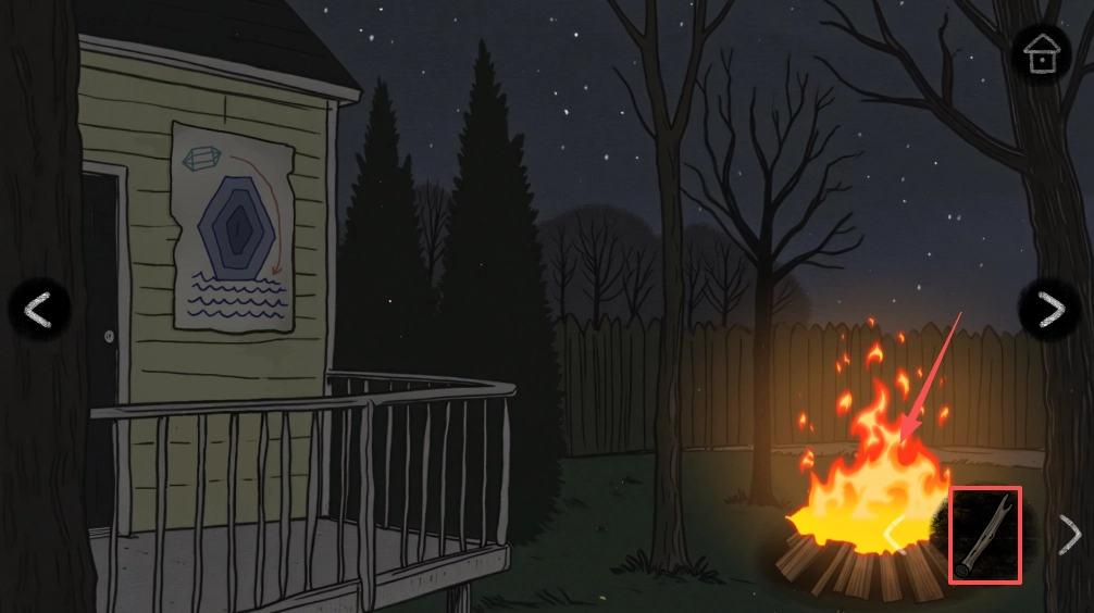 然后用火把将柴堆点燃,壁炉上鹿头的右眼会睁开