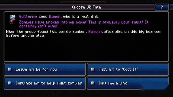 黑色幽默叙事:文本事件中常出现荒诞选项(如用宠物狗吸引僵尸),增强剧情张力。