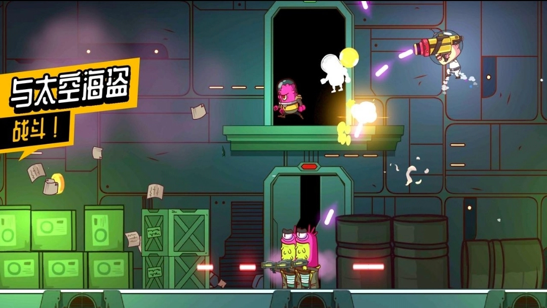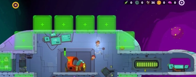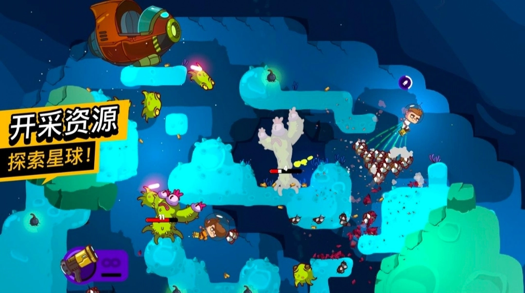 3.这款游戏资源需驾驶飞船去不同星球或飞船上收集,每一关卡趣味横生,战斗与收集资源结合的设计类似横版射击游戏。