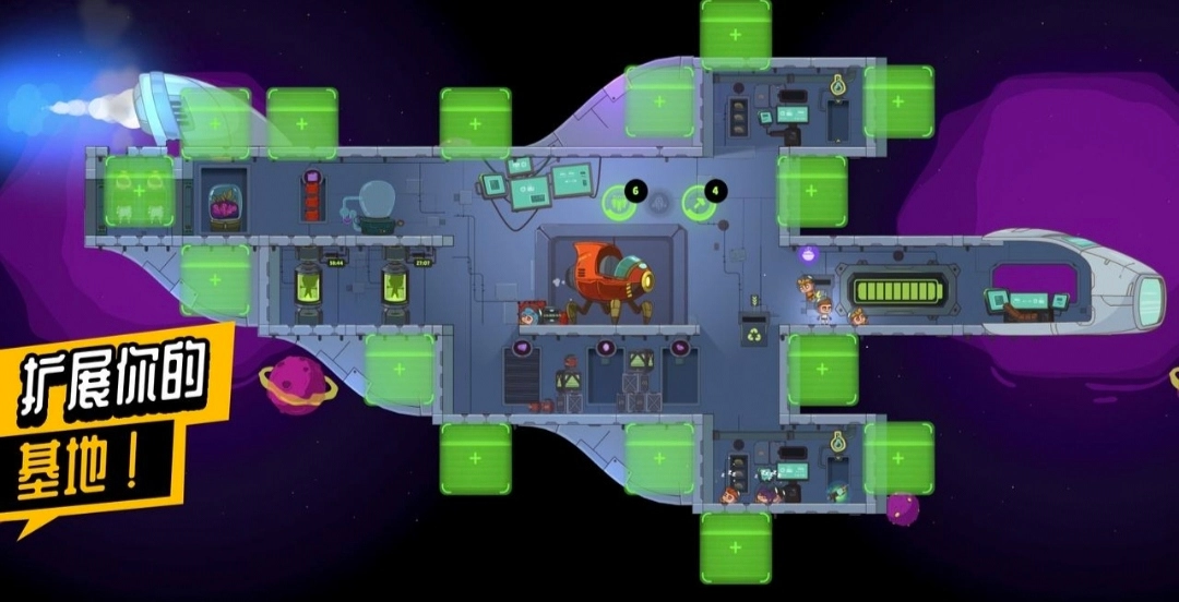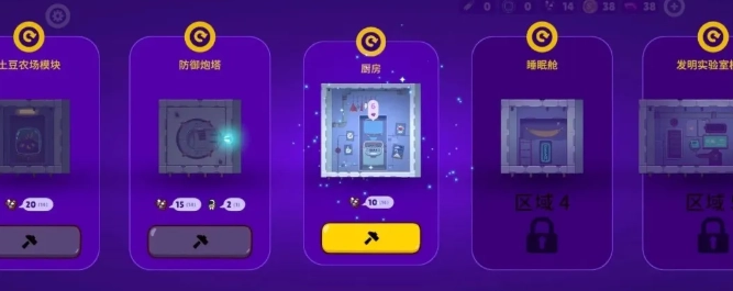 4.星舰重建是游戏的核心玩法。星舰如同积木玩具,可围绕核心部件修复扩建,模块多样,包括睡眠仓、厨房、防御炮塔等。优先建造厨房和防御炮塔,因为吃饭最重要,且需保护星舰免受定期攻击。