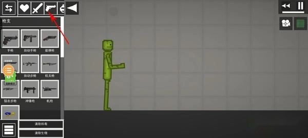 4、胳膊停住在空中停住之后,我们需要在左上角选择枪械图标去选择枪械;