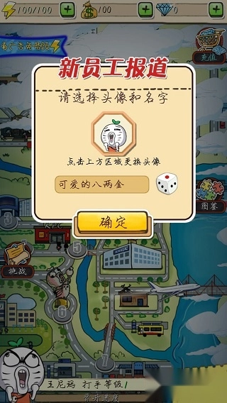 话不多说,接下来由我带大家熟悉这个充满恶搞趣味的街机世界。进入游戏后,系统会提示你输入名字并选择头像——名字和头像可以自由设置,也能随机选择,选好后点击“接受”就能进入第一关了。