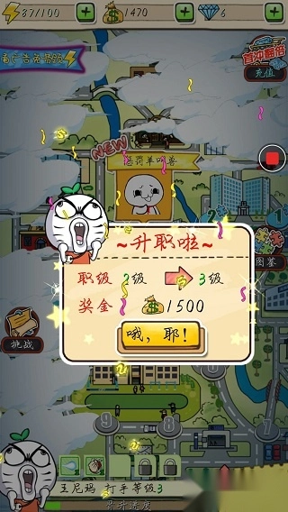 通过不断打,点技能终于把小明打败了,而且还申职了,工资肯定会涨了。