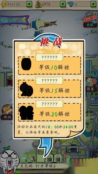还可以通过每日挑战,来挑战不同的关卡。不过最低需要达到10级才可以。