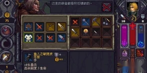 7、神祗:只有信仰过的神才会出现在诸神之殿中(就是选难度的地方)。在诸神之殿里信仰神会要额外花钱,有的需要额外牺牲属性。背叛神会有惩罚(不同的神惩罚也不同)但纹身不会消失(纹身是什么就不做具体介绍了,总会遇到纹身师傅的)。诸神之殿的神里强烈推荐复仇之神,我就是信这个通关的。在地下还有可能遇到邪神,效果是不能装副手,造成伤害50%吸血,非常强,但是信仰之后不会出现在诸神之殿里,你也不能向邪神祈祷(就是直接逃到下一层)。 攻略就写到这里(真的是写累了),希望能对大家有一定的帮助。