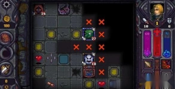 初始角色盖伊:这个角色的定位是个战士,但是因为初始力量和敏捷都比较均衡,所以力量和敏捷都可以点,就看个人喜好了(如果你想点智力,让他执杖,我也拦不住你)。这个角色的自带技能在前期是非常好用的(具体效果自己看说明),经常能把怪降到1攻(最低降到1),但是一旦到了中后期就很无力了,在所有怪攻击都在20以上,你有不敢乱翻格子的情况下,这个技能基本降不了多少攻。角色被动么,个人觉得还凑合,但实际上也回不了太多的血,不过聊胜于无嘛。总体来说盖伊作为初始角色用来过渡前期还是很不错的。