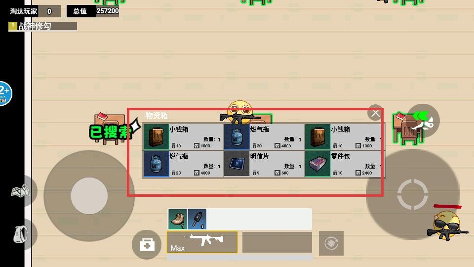 3、打开物资箱后,收集小钱箱、燃气瓶、明信片等物资,积累总值。