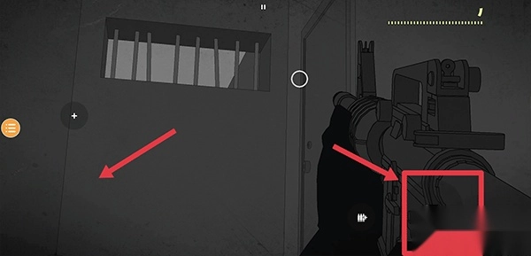4、在游戏中通过左边屏幕控制枪的瞄准点,右边枪按钮为攻击