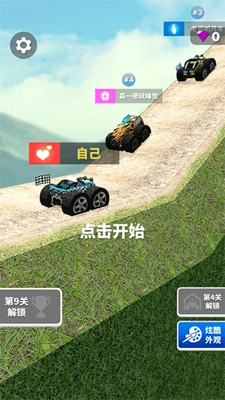 5、每个关卡都会得到一定的奖励,你可以用它来解锁更多帅气的越野车,配件;