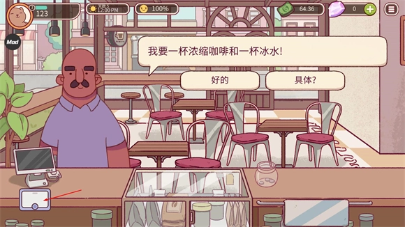 进入游戏后会有顾客前来点单,点击对话按钮就能查看订单详情。
