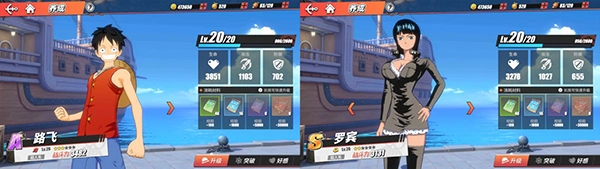 玩家完成主线任务后,能快速获取路飞的角色碎片,轻松将他提升到三星。这时路飞的属性表现差不多能和二星S级角色相比,甚至可能更好,在前期关卡里生存和输出能力都很出色。