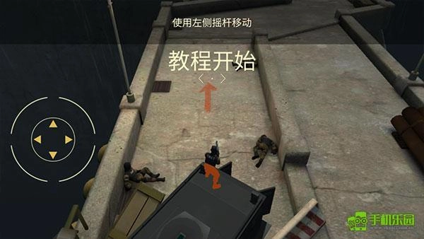 1、启动战术冷却国际服,进入教程引导环节,通过左下角的轮盘来操控角色向前移动。