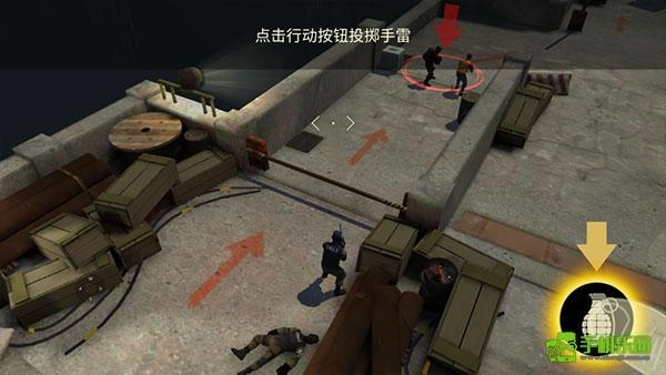 5、当敌人数量较多时,你还能点击右侧的炸弹图标,瞄准后投掷手雷,现在就开始自由探索射击吧。