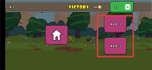 6、获胜后,玩家能够点击“WAVE+1”与“WAVE+5”来提升游戏里的敌人波数,以此挑战更高的难度。