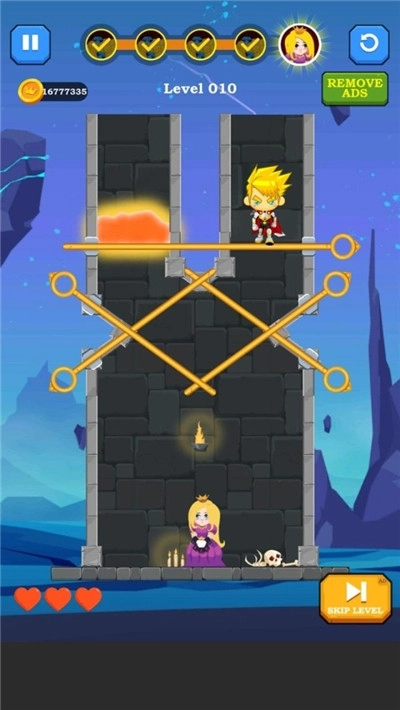 拉针救英雄是一款以英雄救公主为主题的益智解谜游戏,游戏的解谜过程轻松有趣,画面风格卡通可爱。玩家若想顺利通关,就需要规划出一条安全的路线,通过不断拉针来解救英雄。