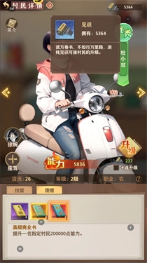 同时,强力村民不仅有着更高的资质上限,也能够拥有超强光环和多个强力挚友能够提高收益的百分比加成。这样,在资质和百分比加成双高的情况下,给强力村民投入资源所获得的回报将会远远大于普通村民,因此对于村民的选择是十分重要的。
